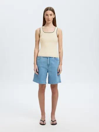 De tank-top is gemaakt met 50% viscose LENZING™ECOVERO™, 28% polyester, 22% nylon.